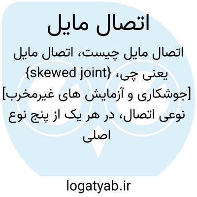 {skewed joint} [جوشکاری و آزمایش های غیرمخرب] نوعی اتصال، در هر یک از پنج نوع اصلی اتصال، که در آن دو قطعه با یکدیگر زاویۀ غیرقائمه دارند