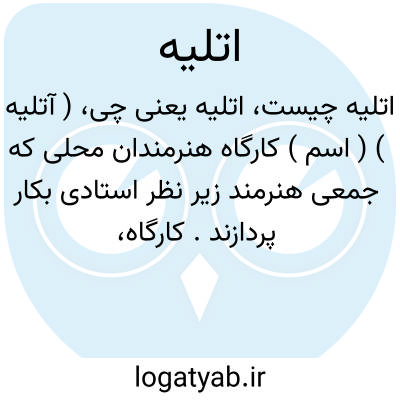 ( آتلیه ) ( اسم ) کارگاه هنرمندان محلی که جمعی هنرمند زیر نظر استادی بکار پردازند.