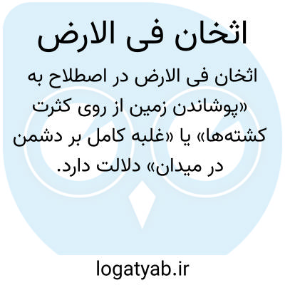 اثْخان فی الارض در اصطلاح یعنی پوشاندن زمین به واسطه زیادی کشته شدگان، همان ضرب المثل رایج فارسی که می گوید: «از کشته پشته ساختن».