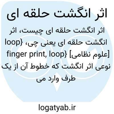 {loop finger print, loop} [علوم نظامی] نوعی اثر انگشت که خطوط آن از یک طرف وارد می شود و پس از گردش حول محوری فرضی و عبور از مقابل دلتا از همان طرفی که وارد شده است خارج می شود متـ. حلقه ای