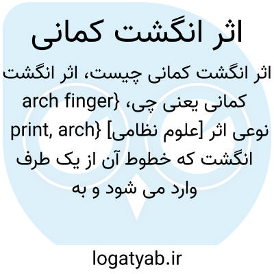 {arch finger print, arch} [علوم نظامی] نوعی اثر انگشت که خطوط آن از یک طرف وارد می شود و به صورت قوس یا کمان از طرف دیگر خارج می شود متـ. کمانی 2