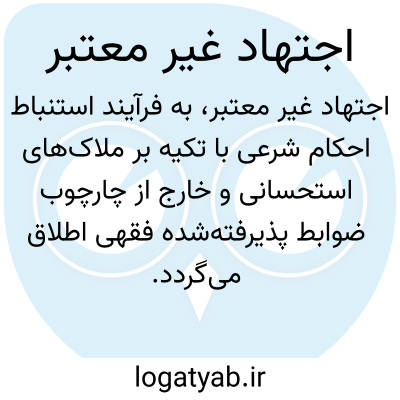 [ویکی فقه] اجتهاد غیر معتبر به استنباط حکم شرعی به ملاک های استحسانی و خارج از ضوابط پذیرفته شده اطلاق می شود.