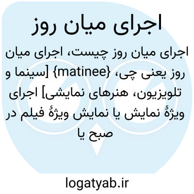 {matinee} [سینما و تلویزیون، هنرهای نمایشی] اجرای ویژۀ نمایش یا نمایش ویژۀ فیلم در صبح یا بعدازظهر