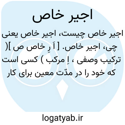 اجیر خاص. [ اَ رِ خاص ص ]( ترکیب وصفی، اِ مرکب ) کسی است که خود را در مدّت معین برای کار کردن تسلیم شخص دیگری کند و مستحق اجرت شود مانند چوپان. ( تعریفات ). و رجوع به اجیر شود.