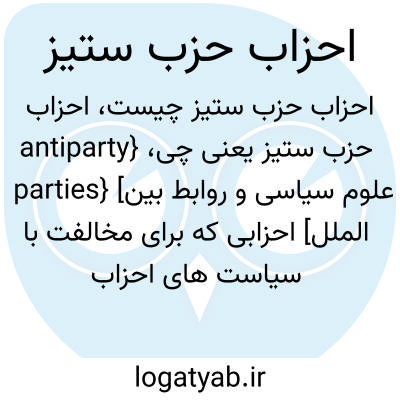 {antiparty parties} [علوم سیاسی و روابط بین الملل] احزابی که برای مخالفت با سیاست های احزاب سنتی از قوانین مجلس سرپیچی میکنند و بر بسیج مردمی تأکید دارند