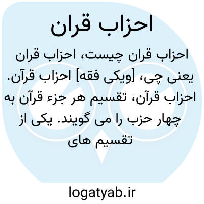 [ویکی فقه] احزاب قرآن. احزاب قرآن، تقسیم هر جزء قرآن به چهار حزب را می گویند.