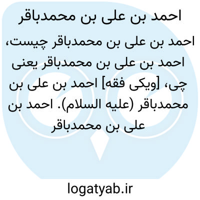 [ویکی فقه] احمد بن علی بن محمدباقر (علیه السلام). احمد بن علی بن محمدباقر (علیه السلام)، از امام زادگان عالی قدر اصفهان می باشد.