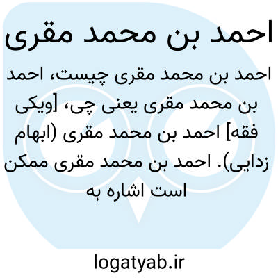 [ویکی فقه] احمد بن محمد مقری (ابهام زدایی). احمد بن محمد مقری ممکن است اشاره به اشخاص و شخصیت های ذیل باشد: • احمد بن محمد فیومی مقری، احمد بن محمد بن علی الفیومی المقری، از لغویون مصر• احمد بن محمد مقری تلمسانی، شهاب الدین ابوالعباس احمد بن محمد، المقری التلمسانی نگارنده کتاب نفح الطیب من غصن الأندلس الرطیب