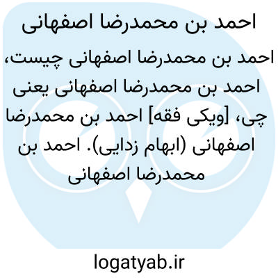 [ویکی فقه] احمد بن محمدرضا اصفهانی (ابهام زدایی). احمد بن محمدرضا اصفهانی ممکن است اشاره به اشخاص و شخصیت های ذیل باشد: • احمد بن محمدرضا هنرمند اصفهانی، از موسیقی دانان معاصر اصفهان• میرزامنظور احمد بن محمدرضا خوانساری اصفهانی، از علما و وعاظ اصفهان در قرن چهارده هجری