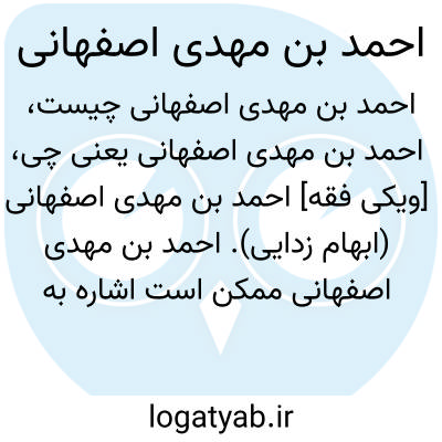 [ویکی فقه] احمد بن مهدی اصفهانی (ابهام زدایی). احمد بن مهدی اصفهانی ممکن است اشاره به اشخاص و شخصیت های ذیل باشد: • ابوجعفر احمد بن مهدی مدینی اصفهانی، از محدّثین اصفهان در قرن سوم هجری• احمد بن مهدی زاهد نجفی اصفهانی، از روحانیون معاصر اصفهان و تحصیل کرده نجف اشرف