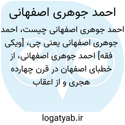 [ویکی فقه] احمد جوهری اصفهانی، از خطبای اصفهان در قرن چهارده هجری و از اعقاب میرزا محمد ابراهیم جوهری صاحب طوفان البکاء بوده است.