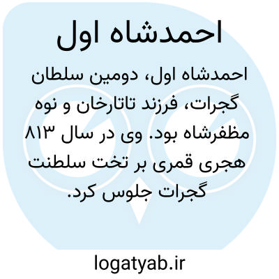 احمدشاه اول. [ اَ م َ هَِ اَوْ وَ ] ( اِخ ) دومین از سلاطین گجرات. و پدر او تاتارخان و جدّ وی مظفرشاه است. وی در 813 هَ. ق. بر تخت سلطنت جلوس کرد و پس از بیست وسه سال ها سلطنت راندن بسال 847 هَ. ق. درگذشت. شهر احمدآباد را او بنا کرده است. ( قاموس الاعلام ). و در طبقات سلاطین اسلام لین پول سلطنت او از 814 تا 846 هَ. ق. ذکر شده است.