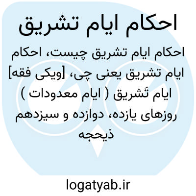 [ویکی فقه] ایام تَشریق ( ایام معدودات ) روزهای یازده، دوازده و سیزدهم ذیحجه است که احکام خاصی دارد.