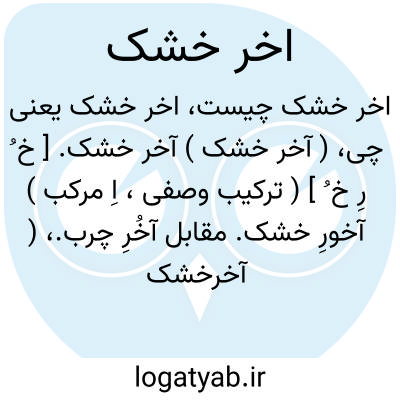 ( آخر خشک ) آخر خشک. [ خ ُ رِ خ ُ ] ( ترکیب وصفی، اِ مرکب ) آخورِ خشک. مقابل آخُرِ چرب.، ( آخرخشک ) آخرخشک. [ خ ُ خ ُ ] ( ص مرکب ) آخورخشک. آنکه چیزی ندارد. فقیر.