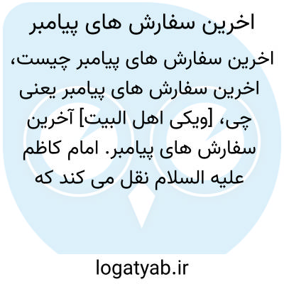 [ویکی اهل البیت] آخرین سفارش های پیامبر. امام کاظم علیه السلام نقل می کند که از پدرم پرسیدم: در واپسین لحظات حیات پیامبر صلی الله علیه و آله چه اتفاقی افتاد؟ فرمود: رسول خدا صلی الله علیه و آله و سلم، حضرت فاطمه، امام علی، امام حسن و امام حسین علیهم السلام را به گرد خود خواند و به کسانی که در خانه بودند فرمود: « از نزد من بیرون بروید» و همسر خود «ام سلمه » را فرمود که بر درگاه بایستد تا کسی وارد خانه نشود. ام سلمه اطاعت کرد.