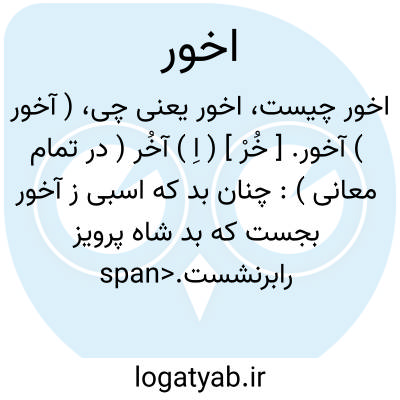 ( آخور ) آخور. [ خُرْ ] ( اِ ) آخُر ( در تمام معانی ):
