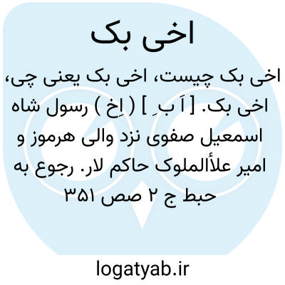 اخی بک. [ اَ ب ِ ] ( اِخ ) رسول شاه اسمعیل صفوی نزد والی هرموز و امیر علأالملوک حاکم لار. رجوع به حبط ج 2 صص 351 - 352 شود.