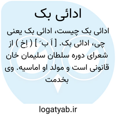 ادائی بک. [ اَ ب َ ] ( اِخ ) از شعرای دوره سلطان سلیمان خان قانونی است و مولد او اماسیه. وی بخدمت شاهزاده مصطفی که در آماسیه اقامت داشت پیوست و پس از مرگ او به اسلامبول شد و در کتابخانه دولتی بخدمت کتاب داری اشتغال جُست و پاره ای مناصب دیگر نیز بدو محول گردید و در 982 هَ. ق. درگذشت. این اشعار ازوست: