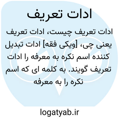 [ویکی فقه] ادات تبدیل کننده اسم نکره به معرفه را ادات تعریف گویند.