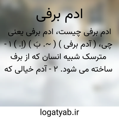 ( آدم برفی ) ( ~. بَ ) (اِ. ) ۱ - مترسک شبیه انسان که از برف ساخته می شود. ۲ - آدم خیالی که گمان می کنند در کوه های هیمالیا زندگی می کند.