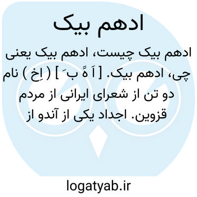 ادهم بیک. [ اَ هََ ب َ ] ( اِخ ) نام دو تن از شعرای ایرانی از مردم قزوین. اجداد یکی از آندو از زمان چنگیزخان از بزرگان ولایت قزوین بودند و این بیت از اوست: