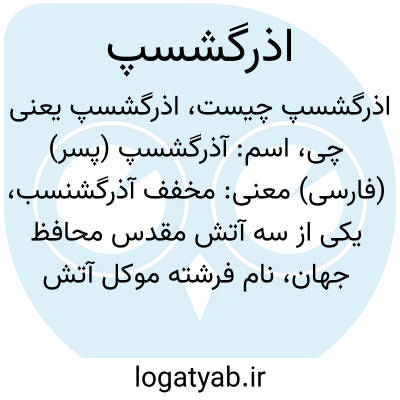 معنی: مخفف آذرگشنسب، یکی از سه آتش مقدس محافظ جهان، نام فرشته موکل آتش