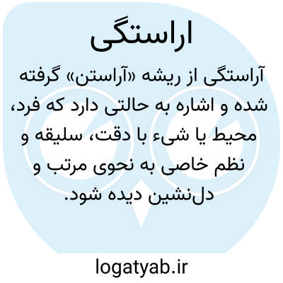 واژه «آراستگی» در زبان فارسی به معنای زیبایی، مرتب بودن، تزئین و نظم ظاهری است. این واژه از ریشه «آراستن» گرفته شده و اشاره به حالتی دارد که فرد، محیط یا شیء با دقت، سلیقه و نظم خاصی به نحوی مرتب و دل‌نشین دیده شود. آراسته بودن هم می‌تواند جنبه‌ی ظاهری و فیزیکی داشته باشد، مانند آراستگی لباس یا محیط، و هم جنبه‌ی نمادین و معنوی، مانند آراستگی رفتار و اخلاق فرد.