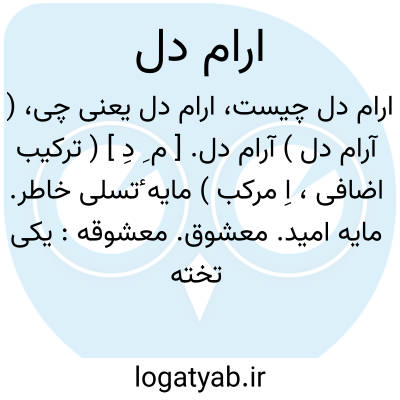 ( آرام دل ) آرام دل. [ م ِ دِ ] ( ترکیب اضافی، اِ مرکب ) مایه ٔتسلی خاطر. مایه امید. معشوق. معشوقه: