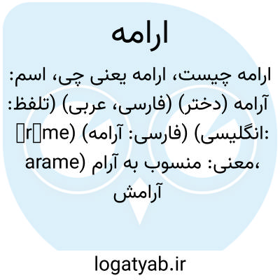 اسم: آرامه (دختر) (فارسی، عربی) (تلفظ: ārāme) (فارسی: آرامه) (انگلیسی: arame)