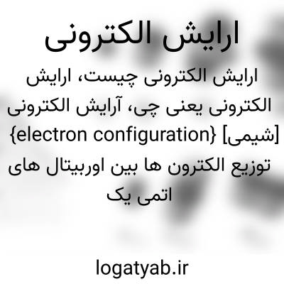 {electron configuration} [شیمی] توزیع الکترون ها بین اوربیتال های اتمی یک عنصر