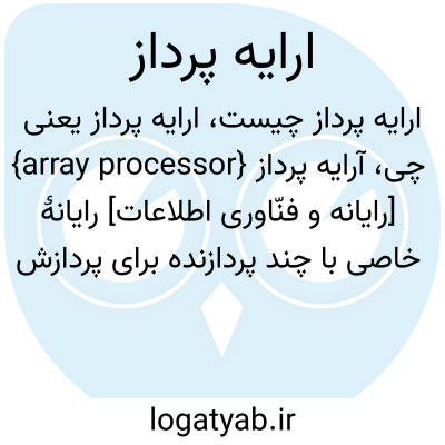 {array processor} [رایانه و فنّاوری اطلاعات] رایانۀ خاصی با چند پردازنده برای پردازش موازی تعداد زیادی از آرایه ها
