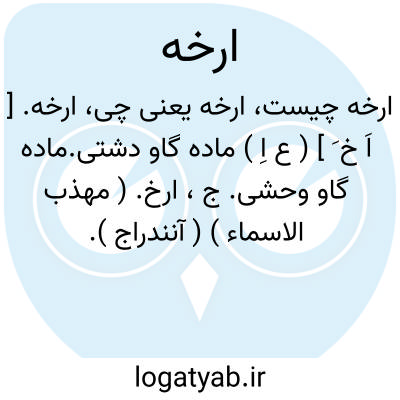 ارخه. [ اَ خ َ ] ( ع اِ ) ماده گاو دشتی.ماده گاو وحشی. ج، ارخ. ( مهذب الاسماء ) ( آنندراج ).