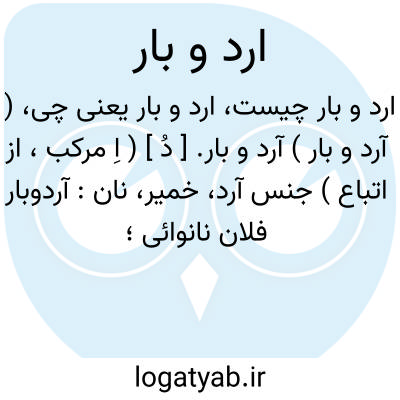 ( آرد و بار ) آرد و بار. [ دُ ] ( اِ مرکب، از اتباع ) جنس آرد، خمیر، نان: آردوبار فلان نانوائی؛ جنس نان ِ آن.