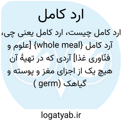 {whole meal} [علوم و فنّاوری غذا] آردی که در تهیۀ آن هیچ یک از اجزای مغز و پوسته و گیاهک (germ ) دانه های غلات از آنها جدا نمی شود