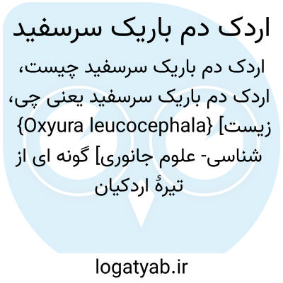 {Oxyura leucocephala} [زیست شناسی- علوم جانوری] گونه ای از تیرۀ اردکیان و راستۀ غازسانان با جثۀ متوسط، گردن کوتاه، منقار بزرگ و دم بلند و محکم که دمش را بر روی آب بالا نگه می دارد