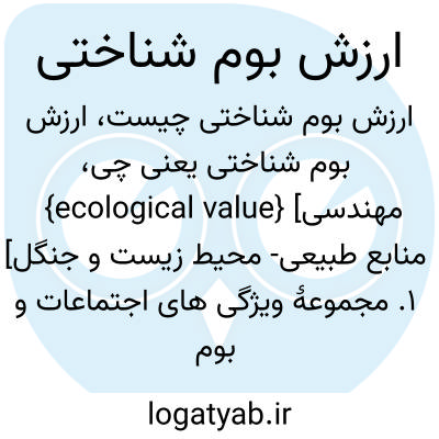 {ecological value} [مهندسی منابع طبیعی- محیط زیست و جنگل] 1. مجموعۀ ویژگی های اجتماعات و بوم سازگان های بوم شناختی که به هر دلیل برای انسان ارزشمند تلقی می شوند 2. خصوصیت قابل اندازه گیری یک اجتماع زیستی یا بوم سازگان