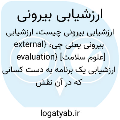 {external evaluation} [علوم سلامت] ارزشیابی یک برنامه به دست کسانی که در آن نقش نداشته اند