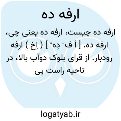 ارفه ده. [ اَ ف َ دِه ْ ] ( اِخ ) ارفه رودبار. از قرای بلوک دوآب بالا، در ناحیه راست پی مازندران. رجوع بسفرنامه مازندران و استرآباد رابینو ص 115 شود. ارفعده.
