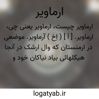 ارماویر. [ اَ ] ( اِخ ) آرماویر. موضعی در ارمنستان که وال ارشک در آنجا هیکلهائی بیاد نیاکان خود و نیز برای آفتاب و ماه ساخته بود. ( ایران باستان 2608 ).