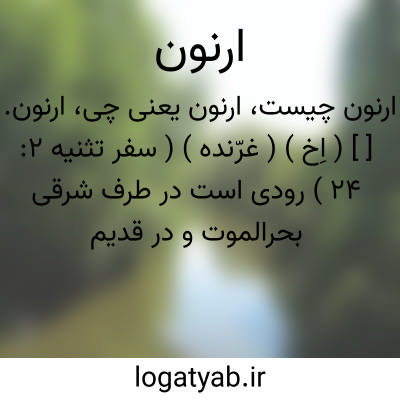 ارنون. [ ] ( اِخ ) ( غرّنده ) ( سفر تثنیه 2: 24 ) رودی است در طرف شرقی بحرالموت و در قدیم حدودموآبیان و عمونیان و پس از آن حدود موآبیان و اموریان و اخیراً حدود موآبیان و سبط راوبین را جدا میکرد. ( سفر اعداد 21: 13 و یوشع 13: 16 ). و اکنون آن را الموجب گویند. طول وی تخمیناً پنجاه میل است و در بحرالموت جاری است. آب آن در فصل زمستان بسیار، ولی درقلب الاسد نزدیک به خشکی میرسد. ( قاموس کتاب مقدس ).