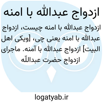 [ویکی اهل البیت] ازدواج عبدالله با آمنه. ماجرای ازدواج حضرت عبداللّه با حضرت آمنه به گونه های مختلفی نقل شده است. عالم فرزانه، مرحوم شیخ عباس قمی در این باره می گوید: «چون عبداللّه به سن شباب (=جوانی (رسید، نور نبوت از جبین (پیشانی) او ساطع بود. جمیع اکابر (بزرگان) و اشراف نواحی و اطراف، آرزو کردند که به او دختر دهند و نور او را بربایند زیرا که یگانه زمان بود در حسن و جمال.