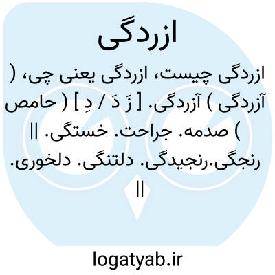 ( آزردگی ) (زَ یا زُ دِ )(حامص. )رنجش، رنجیدگی.