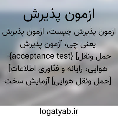 {acceptance test} [حمل ونقل هوایی، رایانه و فنّاوری اطلاعات] [حمل ونقل هوایی] آزمایش سخت افزارهای هواگَرد یا متعلقات آن تحت نظارت مشتری یا نمایندۀ قانونی او قبل از تحویل [رایانه و فنّاوری اطلاعات] آزمونی که با آن درستی کارکرد یک سامانۀ رایانه ای با داده های واقعی، برا...