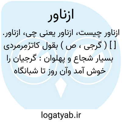 ازناور. [ ] ( گرجی، ص ) بقول کاترُمِرمردی بسیار شجاع و پهلوان: گرجیان را خوش آمد وآن روز تا شبانگاه کروفری می کردند از طرفین، آخرالامر از ازناوران دلاور یکی پیش آمد و سلطان، منکروار: