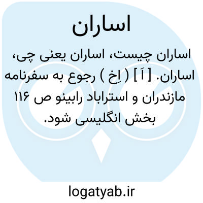 اساران. [ اَ ] ( اِخ ) رجوع به سفرنامه مازندران و استراباد رابینو ص 116 بخش انگلیسی شود.