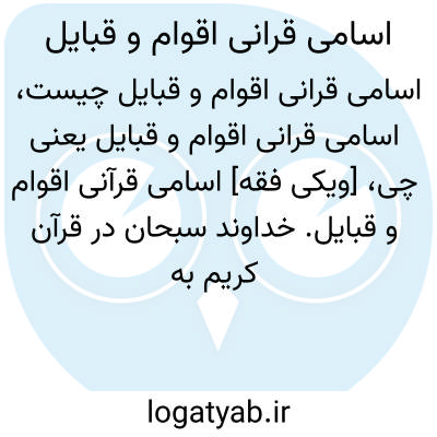 [ویکی فقه] اسامی قرآنی اقوام و قبایل. خداوند سبحان در قرآن کریم به مناسبت های مختلفی از جمله: بیان سرگذشت امت های پیشین، عبرت و پنددادن به آیندگان و هدایت مردم، از برخی اقوام و قبایل نام برده است.