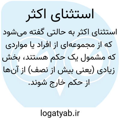 [ویکی فقه] استثنای اکثر به اخراجِ بیش از نصف مصادیق مشمول یک حکم اطلاق می شود.