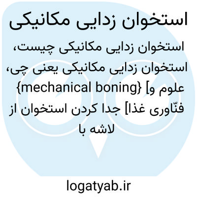 {mechanical boning} [علوم و فنّاوری غذا] جدا کردن استخوان از لاشه با تجهیزات مخصوص استخوان زدایی
