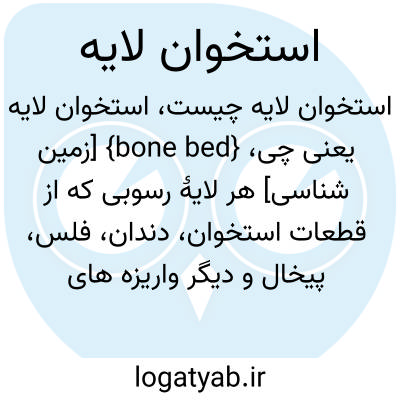{bone bed} [زمین شناسی] هر لایۀ رسوبی که از قطعات استخوان، دندان، فلس، پیخال و دیگر واریزه های آلی تشکیل شده است