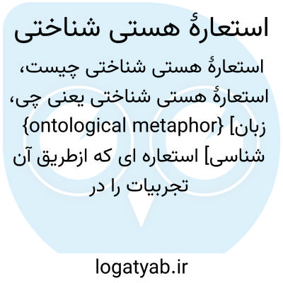 {ontological metaphor} [زبان شناسی] استعاره ای که ازطریق آن تجربیات را در قالب اشیا و جوهرها و ظرف ها بیان می کنند